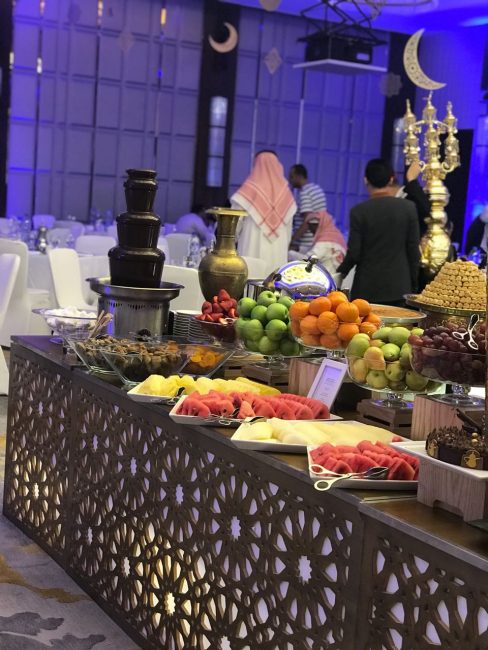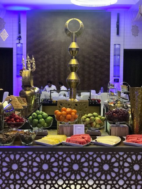 وتتجلى روح الأجواء الرمضانية الساحرة بالزخارف التقليدية والفوانيس المضيئة في القاعة الرئيسية، اللؤلؤة، التي جهزت لتستضيف 220 فرد على كل وجبة فطور. ويشمل بوفية الإفطار الشهي خيارات وتشكيلة واسعة من الأطباق العالمية والسعودية التقليدية،ذلك بالإضافة إلى المشروبات الباردة والساخنة كالعصائرالطازجة والقهوة والشاي. ولقد تم تجهيزبوفية خاص للضيوف الصغار لينعموا بتجربة لذيذة وممتعة في آن واحد.