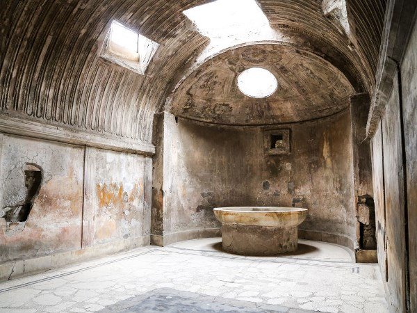| الحمَّامات الحراريَّة: كانت الحمامات الحرارية  العامَّة مفتوحة لأفراد الطبقات الاجتماعيَّة كافة، وكان لكل من الرجال والنساء مكان منفصل للاستحمام. الحمَّامات كانت مكانًا للالتقاء. وكانت في “بومبي”، ثلاث مجموعات من الحمَّامات العامَّة: حمَّامات ستابيان الأقدم وحمَّامات الفوروم الأصغر والحمَّامات المركزية، التي لم يفرغ من تشييدها عندما اندلع بركان “فيزوف”.