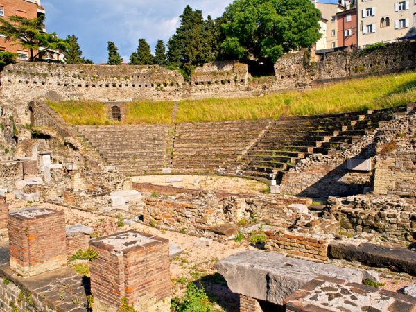 المسرح الروماني: يُنصح باتِّباع طريق “فيا ديل تياترو رومانو” الجنوبي الشرقي من ميدان “ديل أونيتا دي إيطاليا” إلى المسرح الروماني، الذي بُني في القرن الأول الميلادي، عندما كان الرومان يُطوِّرون ترييستي بناءً لأوامر الإمبراطور أوكتافيوس. يستخدم المسرح الحجري منحدر تلَّة سان جيوستو كقاعدة له، والخطوات العلويَّة كانت على الأرجح مصنوعة من الخشب. يمكن رؤية بعض التماثيل  التي تُزيِّن المسرح، فهي كانت تحت الضوء خلال الثلاثينيات، في قلعة “كاستيلو سان جوستو”.