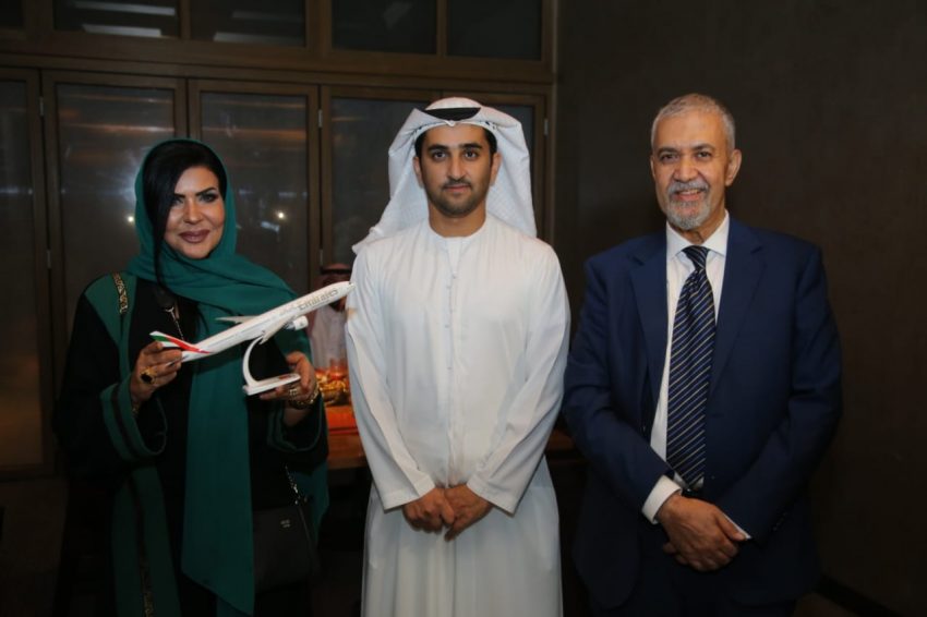 بحضور الأستاذ خالد الحداد نائب الرئيس في طيران الإمارات في المملكة العربية السعودية والأستاذ سعيد خليفة مدير المنطقة الوسطى لطيران الامارات و الاستاذ حاتم عمر مدير العلاقات الإعلامية.