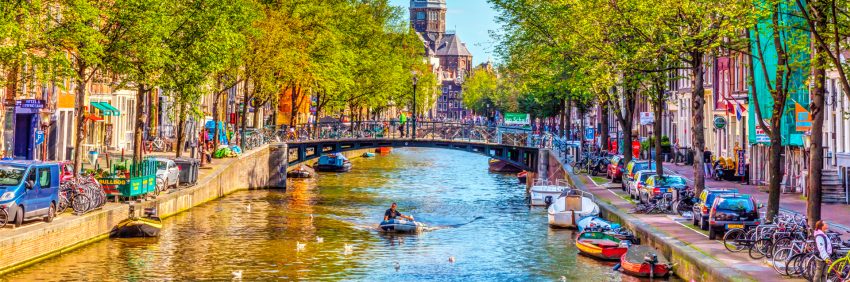 تضم العاصمة أمستردام أكثر من 100 كيلومتر من القنوات و 90 جزيرة و 1500 جسر، ولعل قنواتها الجميلة مع مزيج مذهل من المشاهد الخلابة هي ما تعطي هذه المدينة هذا السحر الذي ينبثق من كل مكان، لذا لن تكتمل رحلتك إلى هناك دون الاستمتاع برحلة على متن قارب بين تلك القنوات الجميلة.