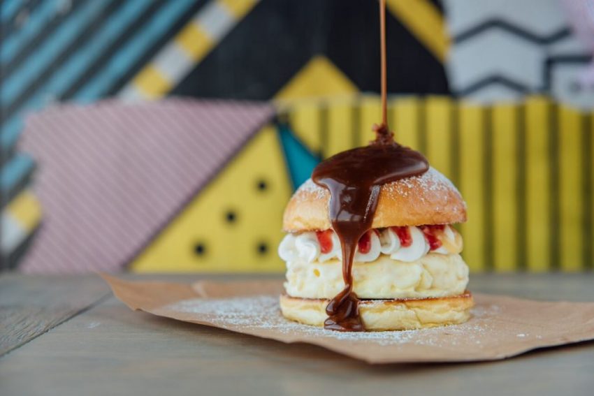 كما يقدم المطعم لمحبي الحلوى، حلوى البرجر ديسرجر المحضرة من مكونات تحاكي عناصر سندويشة البرجر العادية، بدءاً بخبز البريوش المكرمل مع شطيرة من كعكة بارفيه الفانيلا، والليمون الرائب بدلاً من الخردل وصولاً إلى كومبوت الفراولة بدلاً من الكاتشب والكريما المخفوقة بدلاً من المايونيز.