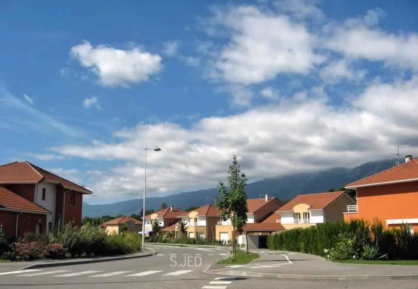 –؛ويفصلها عن سويسرا عدة أمتار ، وتبعد عن بحيرة ليمان بحوالي أربعة كيلومترات.