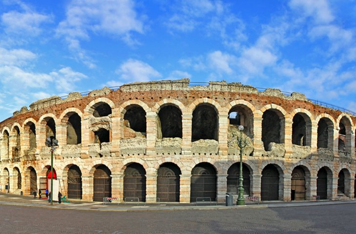 ارينا فيرونا من أكبر المسارح الرومانية بالعالم، أسس عام مائتي وتسعين قبل الميلاد، ويضم أربعة وأربعين صف من المقاعد تستوعب اثنين وعشرين ألف مشاهد.