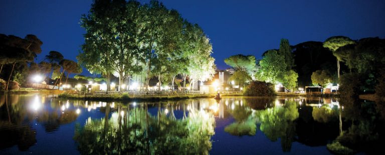 تزداد حدائق تيفولي أكثر جمالاً في فصل الصيف وهذا بفعل الإضاءة الرائعة على النوافير.