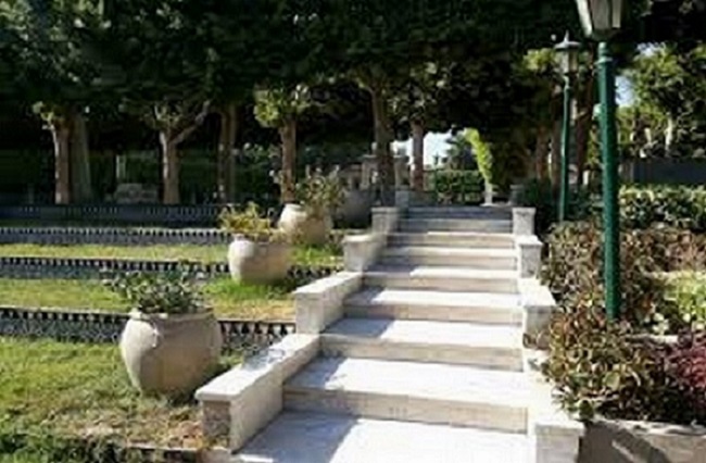 • يمكنك التنزه وسط ممرين تحاط بهم الأشجار الأندلسية الرائعة، كما توجد نهاية الممرين نافورة رخامية ثمانية الشكل محاطة بتماثيل أسود.