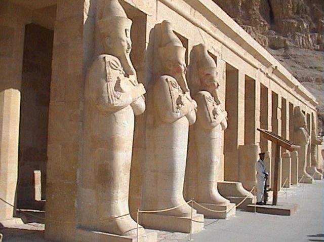 • زيارة الرواق الثاني ويستعرض أحداث مولد حتشبسوت ورحلاتها التجارية وبقايا كتاباتها، مع 26 تمثال للملكة في هيئة أوزوريس.