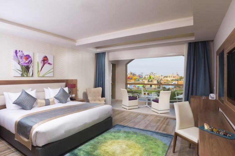 من افضل فنادق شرم الشيخ اكوا بارك فئة 5 نجوم، يقع على بعد كيلو متر واحد فقط من الشاطئ، ويتميز بغرف بمساحات واسعة وديكورات فاخرة بالإضافة إلى أثاث خشبي مريح.