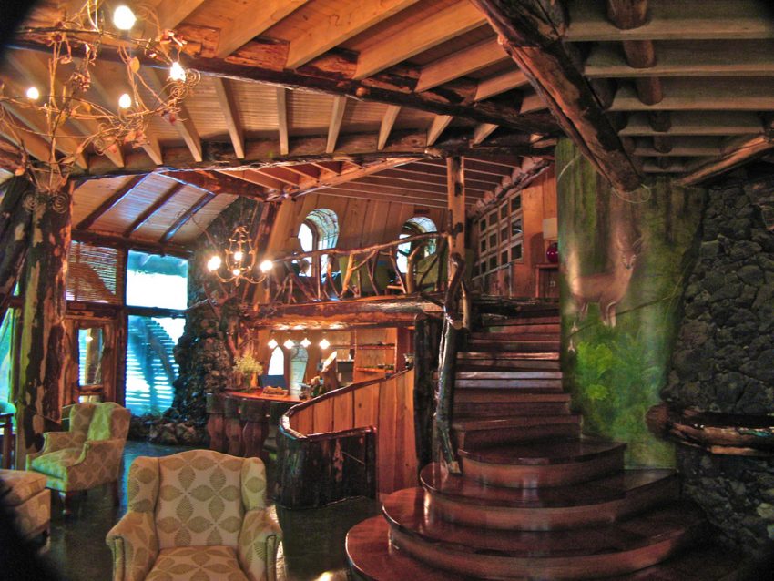 تتخذ غرف الفندق شكلاً غير مألوف حيث إنها تمت صناعتها من الخشب، مما يعطيها طابعاً خاصاً، كما يضم الفندق أيضاً عدداً من المطاعم تقدم أشهى الوجبات وسط الاستمتاع بجمال طبيعة، فضلاً عن احتوائه على شلال اصطناعي يضفي نوعاً من الجمال علي الفندق.