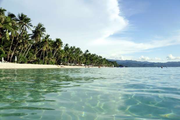 يوجد الشاطئ الأبيض في جزيرة بوراكي في الفلبين وتتراوح درجة حرارته ما بين 79-84 فهرانهايت، وكما هو واضح من اسم الشاطئ فإنه مغطى بالرمال البيضاء التي تحفها أشجار النخيل، وبالإضافة إلى جمال الشاطئ يمكن الإستمتاع بواحد من أجمل مشاهد الغروب من خلال هذا الشاطئ.