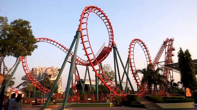 ركوب القطار السريع Roller Coaster في مدينة الألعاب سيام بارك سيتي..