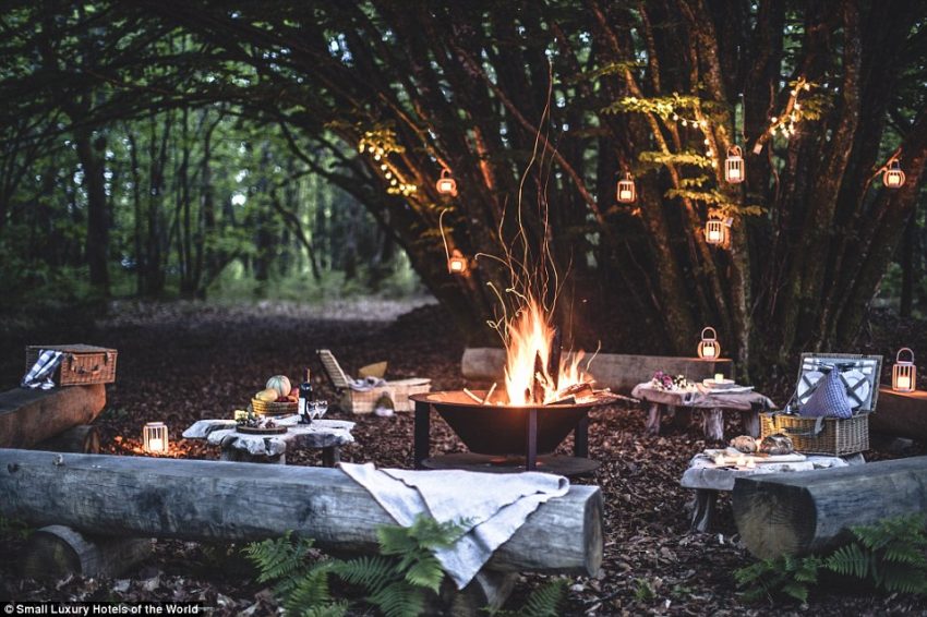 يوفر مطعم “Domaine Des etangs” في فرنسا لضيوفه حفلة شواء في الهواء الطلق في الغابة السحرية التي يوجد بها ألف شجرة، يتم إعدادها من قِبل الشيف فابيان بيفور.