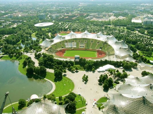 تم إنشائها عام 1972م فى شمال ميونخ وتصل مساحتها إلى 3 كيلومتر مربع لتقام بها الألعاب الأولمبية الصيفية , تتميز الحديقة بمعمارها الجميل ويأتى لزيارتها 4 مليون شخص سنويا للإستمتاع بممارسة الأنشطة الترفيهية المختلفىة بها فيمكنك حضور الفاعليات والمسابقات الرياضية بها كالسباحة والتنس وغيرها .