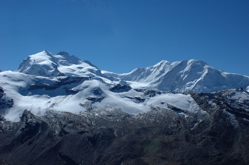 يعد جبل مونتي روزا ، الذي تحيط به الأنهار الجليدية ، أعلى جبل في جبال الألب السويسرية. واعتمادا على طريقة العد ، فيضم الجبل عشرة قمم أعلى من 4000 متر ، ويقع جزئيا في إيطاليا. تعتبر Dufourspitze (قمة صخرية سوداء بارتفاع 4634 متراً) في كتلة مونتي روزا هي أعلى قمة في سويسرا وفقا لموقع المرسال.