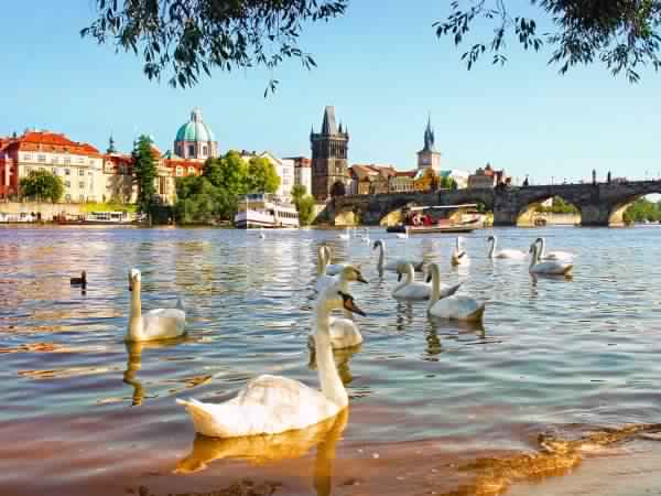 في براغ، يحلو مشاهدة البجعات التي تعيش على نهر “فلتافا”، بالقرب من جسر “تشارلز” في الصباح الباكر وفي نهاية اليوم، عندما يقترب البجع من الشاطئ.