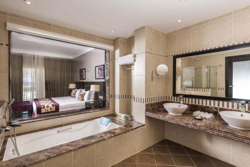 كما يضم المنتجع، عشرة مطاعم مصممة لتلائم جميع الأذواق، وتقدم العديد من النكهات المميزة من الشرق الأوسط، والهند، وإيطاليا، والصين، واليابان، وتركيا، ومنطقة حوض البحر المتوسط، وتوفر خيارات الجلوس الخارجية في الهواء الطلق، والداخلية ذات الأجواء المفعمة بالحيوية وجميعها مشمولة ضمن سعر الغرفة عند الوصول.