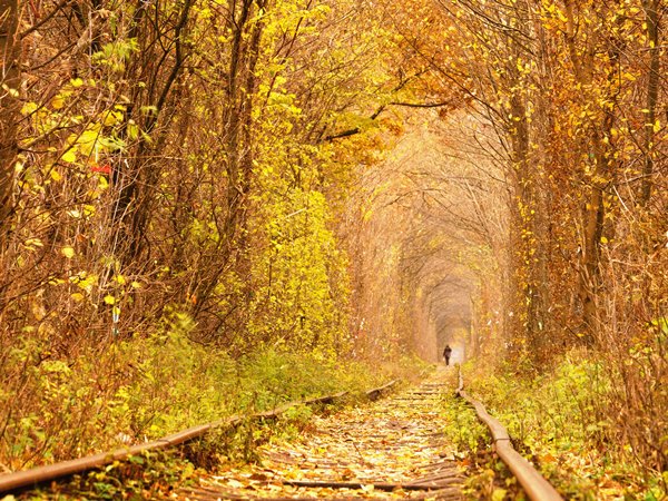 يبعد هذا المسار الخاص بقطار ثلاثة أميال خارج بلدة “كليفان” في أوكرانيا ، ويعدُّ من الأماكن الرومانسية. ولا تزال القطارات تمرُّ، هناك، ثلاث مرَّات في اليوم. ويُقال إن الأزواج الذين يزورون المكان تتحقَّق أمنياتهم. علمًا بأنَّ طول المسار يبلغ ميلين، ممَّا يجعل من المشي لمسافات طويلة في فترة الظهيرة تجربة مثالية.