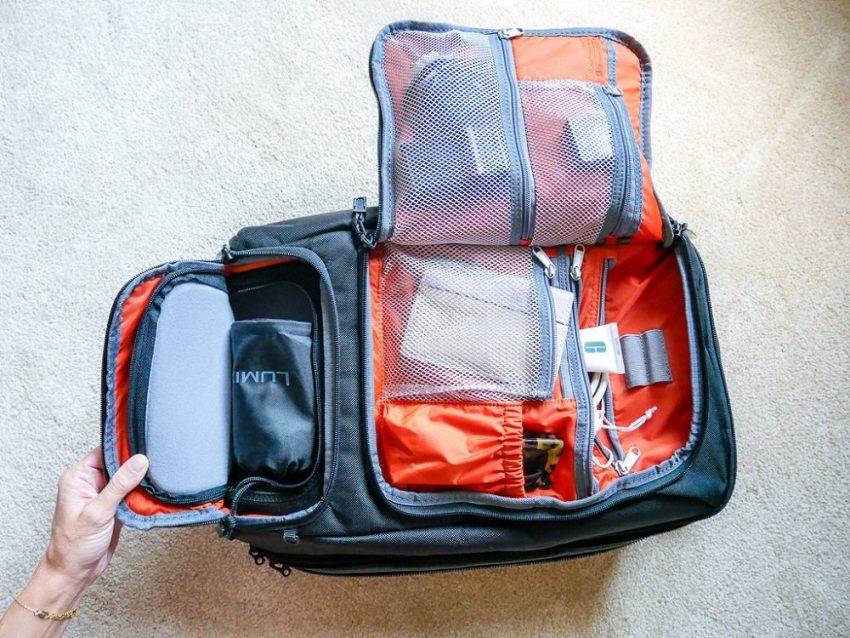 هذا الترتيب المثالي يجنب الرجل حمل حقيبة سفر أخرى بجانب ضمان تحقيق النظام وتجنب الفوضى التي تتسبب في الكثير من الأحيان بتجعيد الملابس وتشويه مظهرها بالإضافة إلى ضياع وفقدان المتعلقات الصغيرة كشواحن الهواتف وقطع الإكسسوار والأغراض الشخصية الأخرى.