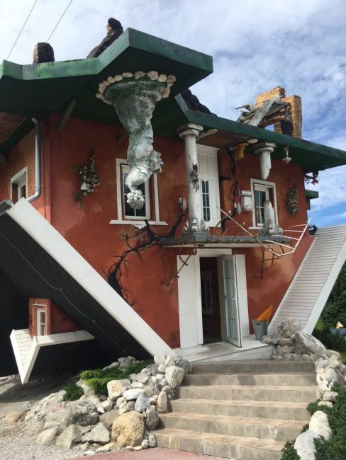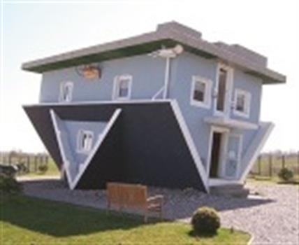 عند مشاهدة هذا المنزل للمرة الأولى قد تعتقد أنه منزل أصيب بإعصار جعله يبدو بهذا المنظر، ولكن حين تدخل إلى داخل المنزل تجد أن أرضية المنزل في الأعلى والسطح موجود في الأسفل، وكل شيء في هذا المنزل أعد بشكل معاكس.