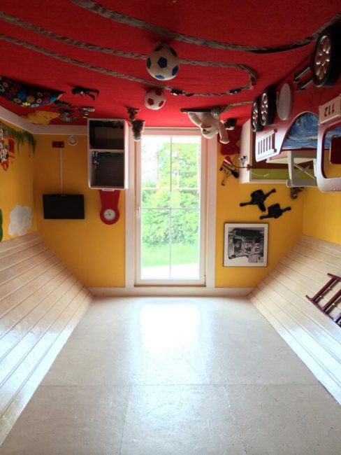 حتى يتم الدخول إلى هذا المنزل يمكنك الدخول عبر النافذة الموجودة في الأسفل، ولو تفقدت المنزل سوف تجد غرفة الأطفال تحتوي على لعب أطفال ومقتنيات مثبتة في السقف.