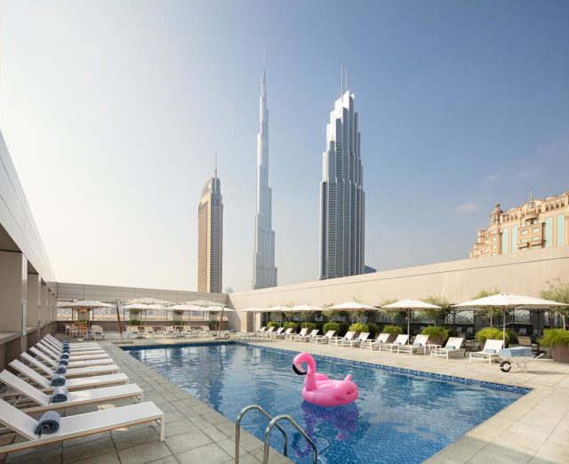 يقع هذا الفندق في ظل برج خليفة ، ويقدم مسبح و عروض غداء جميلة وذلك مقابل 200 درهم إماراتي في أيام الأسبوع و 250 درهم إماراتي في عطلات نهاية الأسبوع.