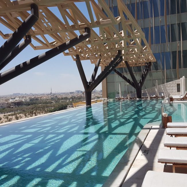 فالفندق فيه تقريباً 5 مطاعم وحمام سباحة داخلي وحمام سباحة خارجي ، ومجموعة من التراسات الخارجية والنخيل والأشجار التي تجعلك تشعر أنك في منتجع
