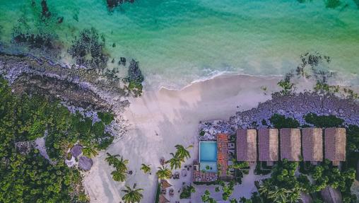 تم بناء الغرف بمواد أصلية تعتمد على جذوع الأشجار وسقف النخيل التي تفتح على تراسات خاصة مع دشات خارجية، وتحتوي جميع الغرف على سرير بحجم ملكي، وتضم الأثاث الخشبي والمنسوجات الملونة الزاهية.