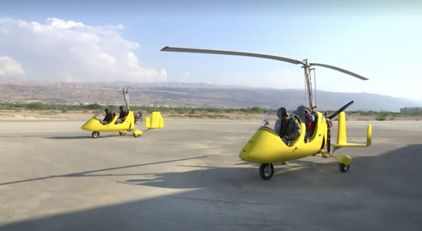 تحوم طائرات صفراء زاهية الألوان في أفق البحر الميت منذ الشهر الماضي، وهي نوع بين الطائرة الهليكوبتر والطائرة الشراعية وتعرف باسم طائرة الجيركوبتر ، وتعد أحدث إضافة إلى مجموعة نادي الرياضات الجوية الملكي فيالأردن وفقا لموقع دليل المسافر العربي.