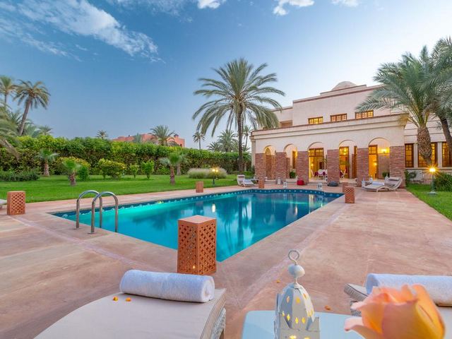 يتميز منتجع دي لا بالميريا بتوفير مجموعة من الفلل العصرية الراقية تتسع حتى 8 أفراد ويحيط بها حديقة مُنسّقة بمسبح خاص وهو من افضل منتجعات في مراكش المغرب.