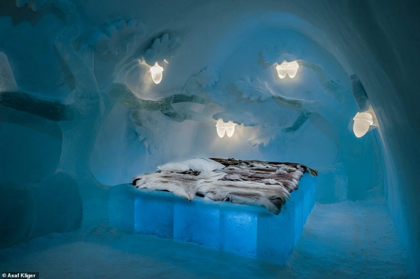 وفي نسخة هذا العام من الفندق، والتي تعد 29، استخدم الفنانون والمصممون 30.000 متر مكعب من مزيج من الثلج والجليد – لبناء المبنى.