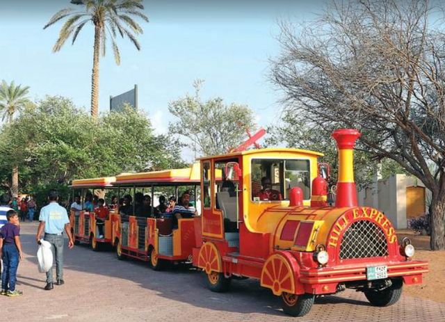• يمكنك ركوب قطار حديقة الهيلي في العين الذي يقوم بتوصيل الأشخاص من مكان إلى آخر حيث يقوم بالسير في جميع أرجاء الحديقة.
