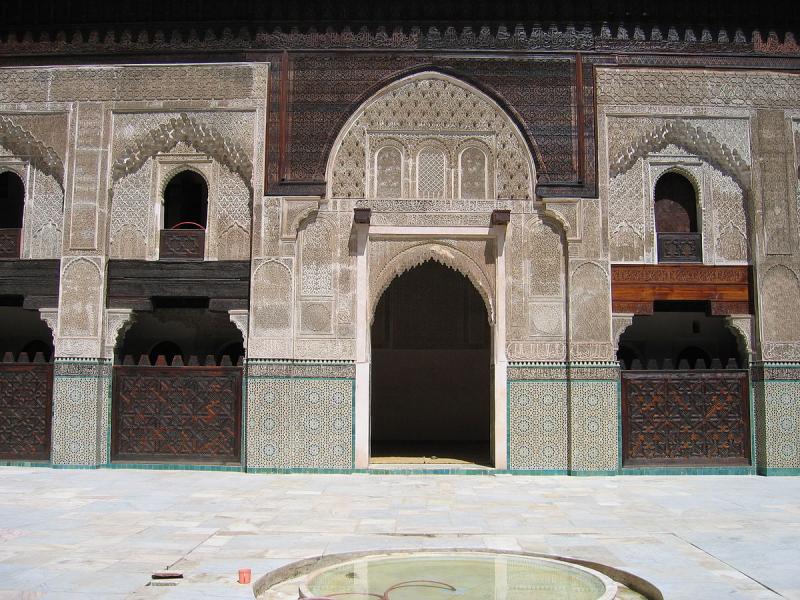 تختفي مدرسة بو عنانية التاريخية في ثنايا المدينة المكتظة، ولقد بنيت المدرسة بين عامي 1350 و1357 على يد السلطان ميرنايد بو عنان، وهي واحدة من المباني الدينية القليلة التي يدخلها غير المسلمين، تعتبر المدرسة جوهرة معمارية فخمة وواحدة من أجمل القصور في المغرب؛ حيث أبدع الحرفيين المغاربة بالمنحوتات الخشبية والزخارف الجصية الرائعة.