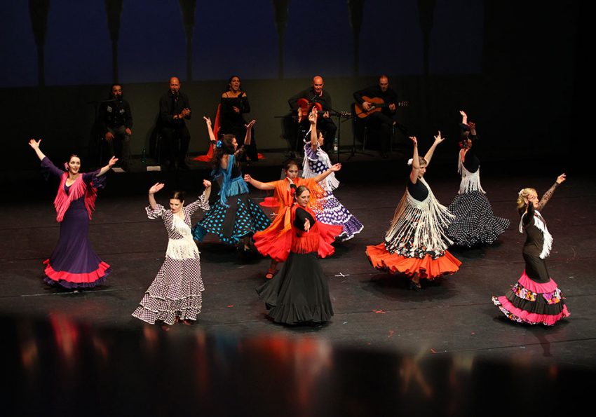 بينما ترجع أصول هذا النوع إلى موسيقى غجر رومانيا فى أوروبا الشرقية، فإن رنين الفلامنكو يعتبر إسبانيًا بشكل مميز، وهو يميز بالتحديد مناطق أندلوسيا وإكسترامادورا ومورسيا. يتكون الفلامنكو من ستة أجزاء: الغناء، والجيتار، والرقص، والصوتيات، والتصفيق بالأيدى، وطقطقة الأصابع. وتُعزف الفلامنكو وتحظى بالاحتفاء فى جميع أنحاء العالم، ومن الغريب أن هناك أكاديميات للفلامنكو في اليابان أكثر عددًا من إسبانيا.