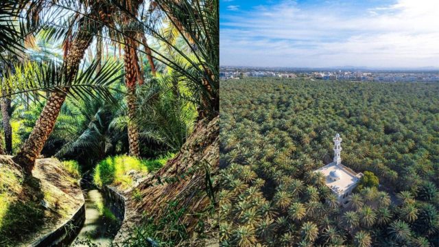 عندما تدخل واحة النخيل الشاسعة في العين فستشاهد أجمل المناظر الطبيعية الخلابة التي ستجعلك مندهشاً وتحتوي الواحة 147 ألف شجرة نخيل وتعتبر أحد مواقع التراث العالمي التابعة لليونسكو ولاتزال تسقى باستخدام الري بالفلج البالغ من العمر 3000 عام .