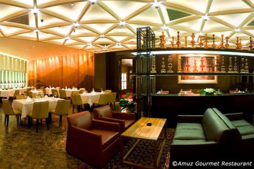 يقدم هذا المطعم الفرنسي، الذي عد واحد من أفضل مطاعم جاكرتاالأطباق التي تم إعدادها بواسطة الشيف المؤسس للمطعم جيل ماركس، والذي يستخدم المكونات الطازجة في الطعام طوال الوقت. تشمل خيارات الغداء في مطعم Amuz Gourmet تجربة من طبقتين بسعر 250،000 روبية إندونيسية، أو وجبة غداء من أربع أطباق بسعر 350،000 روبية إندونيسية.
