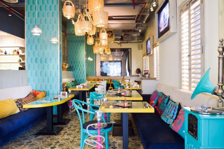 لقد اخترنا الجلوس في الردهة الخارجية للمطعم، ذلك للاستمتاع بالأجواء الشتوية في إمارة دبي، إلا أنه يوفر ردهة داخلية فخمة مكونة من جلسة داخلية وتراس زجاجي مغطى، تضم كراسي يسودها اللون التركوازي والزهري مع كلمات وأشعار مكتوبة على جدران المطعم الداخلية !.