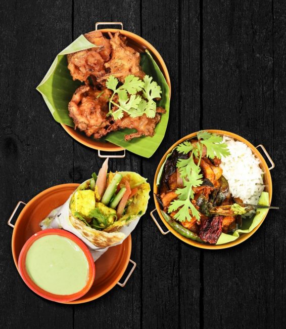 | ذا دلهي | تشمل باكورا البصل، ولفائف بانير كاثي، والدجاج الحار مع الأرز |