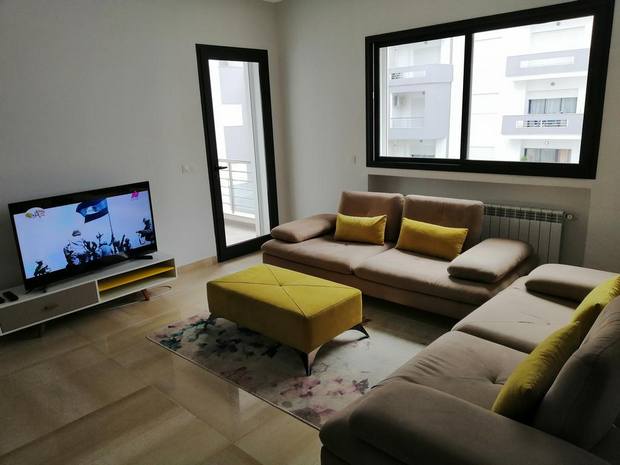 تتميز هذه الشقة والتي تُعد من افضل خيارات شقق للايجار في تونس العاصمة بوجود كافة الخدمات مع مساحات واسعة للمعيشة ومطبخ مُجهز بالكامل.