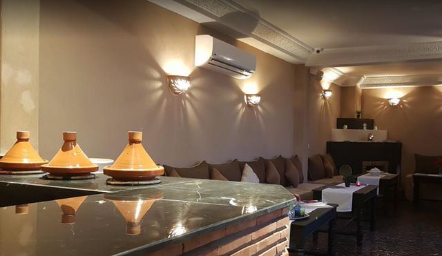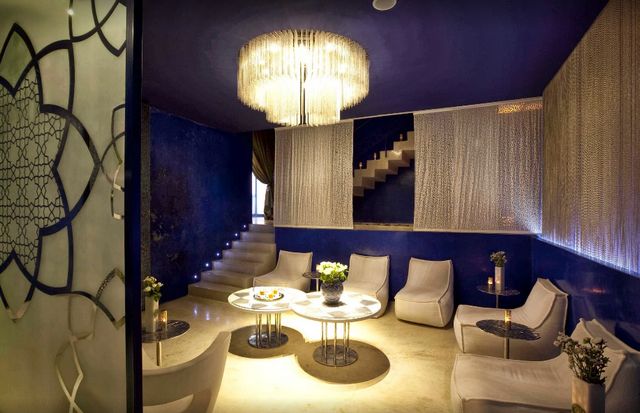 من حمامات مراكش التي تجمع بين الديكور الكلاسيكي الأنيق المُستمد من الثقافة والتراث المغربي الشرقي والإسلامي، مع الخدمات العصرية باستخدام مواد طبيعية مُتعارف عليها في البلد منذ قديم الزمان.