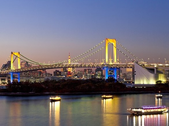 مع غروب الشمس تنير أضواء طوكيو، ويصبح من الممكن الاستمتاع برحلة ليلية بالحافلة وزيارة الكثير من المعالم مثل برج طوكيو المضيء، وجسر قوس قزح.