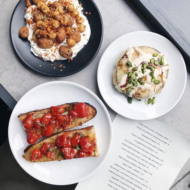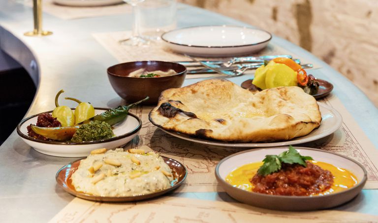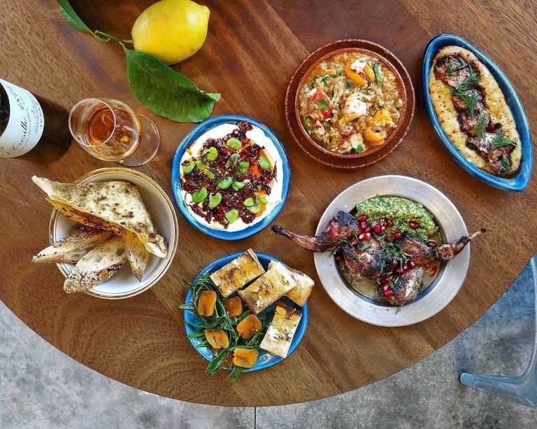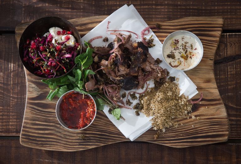 يُقدم المطعم أطعمة مستوحاة من النكهات الشرقية على طراز المزة والأطباق الرئيسية، ويتم تقديم الوجبات على الصواني المعدنية مع المخللات الحادة اللذيذة وخبز البيتا الدافئ مع أطباق اللبنة والشبت.