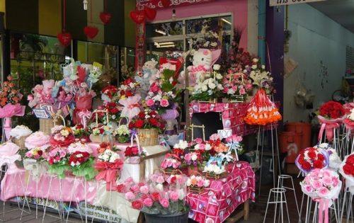 يقع سوق الزهور على طريق برايساني، في السوق الليلي في شنغماي، بجوار النهر مباشرة، يعمل على مدار24 ساعة يوميًا، ويتم تسليم الزهور للأكشاك في الساعات الأولى من الصباح.