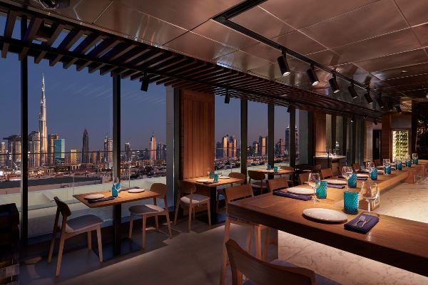 يوفّر المطعم إطلالات مذهلة على أفق دبي المتلألئ من جهةٍ، والخليج العربي من جهة أخرى، فضلًا عن مقاعد داخليَّة وأخرى على الـ”ترَّاس” في الهواء الطلق، مع حوض سباحة مترامي الأطراف يحاكي الخليج.