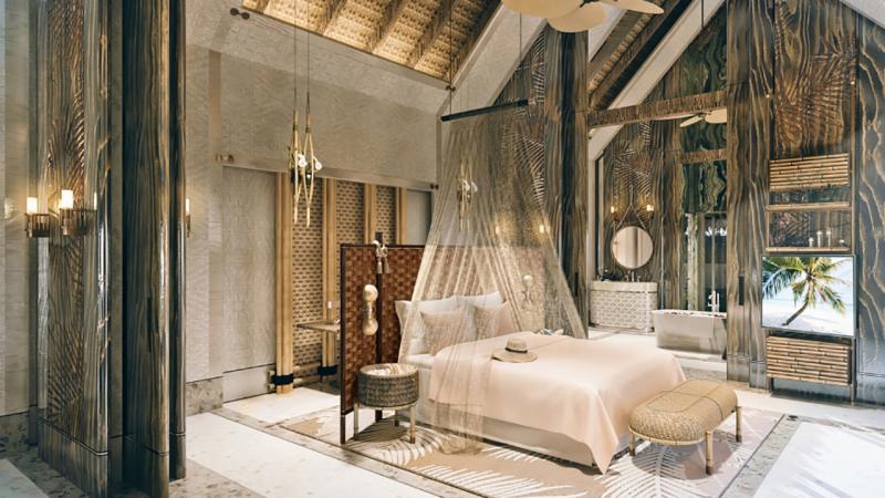 يبدأ كل شيء برصيف الوصول الذي يحتوي على سقف من القش المموج الذي يتيح للضيوف معرفة أن الجماليات هي شيء مهم في هذا المنتجع الراقي. بعد ذلك، يتم نقلك إلى الفيلا الكبيرة الحجم التي تختارها إما على الرمال البيضاء البكر أو فوق المياه البلورية، التي تمتد كل منها على مساحة تتجاوز 1000 قدم مربع بالإضافة إلى المساحات الخارجية الواسعة.