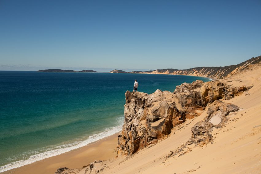 كثبان رملية مُلوَّنة بألوان قوس قزح تُعانق شواطئ هذه المدينة الساحليَّة، حيث يقع “رينبوو بيتش” بين جزيرة “فريزر” ومتنزَّه “غريت ساندي” الوطني والمحيط الهادئ الواسع. ويوفِّر هذا الشاطئ ملاذًا مثاليًّا لروَّاده.