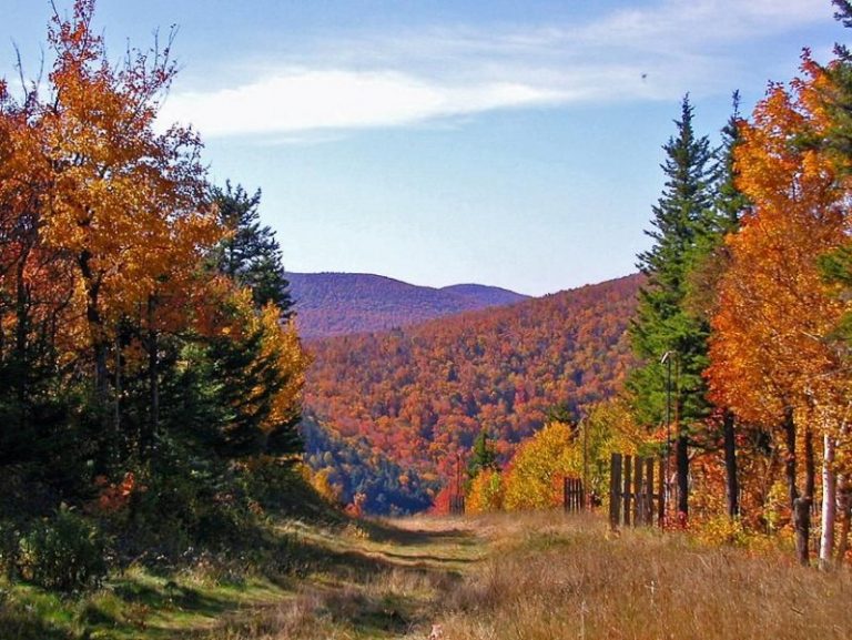 ربما لن تجد مكانًا آخر في نيويورك حيث تزين أوراق الشجر الخريفية المتساقطة الأرض الأمريكية في أواخر سبتمبر إلى منتصف أكتوبر، هنا في جبال كاتسكيل يصبح شجر الزان والقيقب والسكر الأصفر الأمريكي طيفًا نابضًا بالحياة باللونين الأحمر والأصفر.