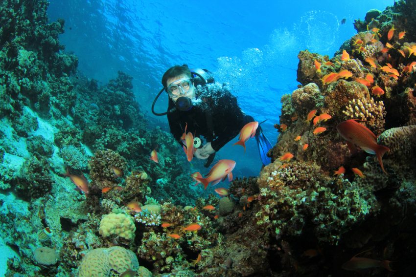 تكمن الشعاب المرجانية الرائعة أسفل سطح البحر الأحمر؛ يأتي كثير من السائحين إلى هناك لرؤية الحياة البحرية في المواقع الممتدة من مضيق تيران في الشمال، إلى الطرف الجنوبي من سيناء. الشعاب المرجانية من كلِّ لون وشكل، ومنها الأحمر الناري والأصفر، والأسماك موجودة في كل مكان وهي من الأنواع شتَّى… يُمكن لأولئك الذين يُفضِّلون الغطس أن يلقوا نظرة على الأعجوبة تحت الماء، باستخدام القناع، وذلك بفضل الشعاب الضحلة القريبة من الشاطئ مثل White Knight وMiddle Garden. ومن مواقع الغوص المُفضَّلة: ريف Gordon وJackson في مضيق تيران، وتلك الموجودة في مُتنزَّه رأس محمد الوطني، مثالية أيضًا للغطس تحت الماء. ويُمكن الوصول إليها بالقوارب في رحلات ينظمها أيّ من متاجر الغوص العديدة في شرم الشيخ.