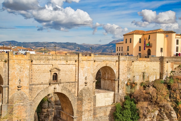 استغرقت عمليَّة بناء هذا الجسر الحجري نحو 42 سنة، ابتداءً من سنة 1788، ليرتفع على طول 70 مترًا بعد ذلك. وثمة غرفة تقبع أعلى القوس المركزي في الجسر، كانت استخدمت لأغراض عدة، بما في ذلك السجن.