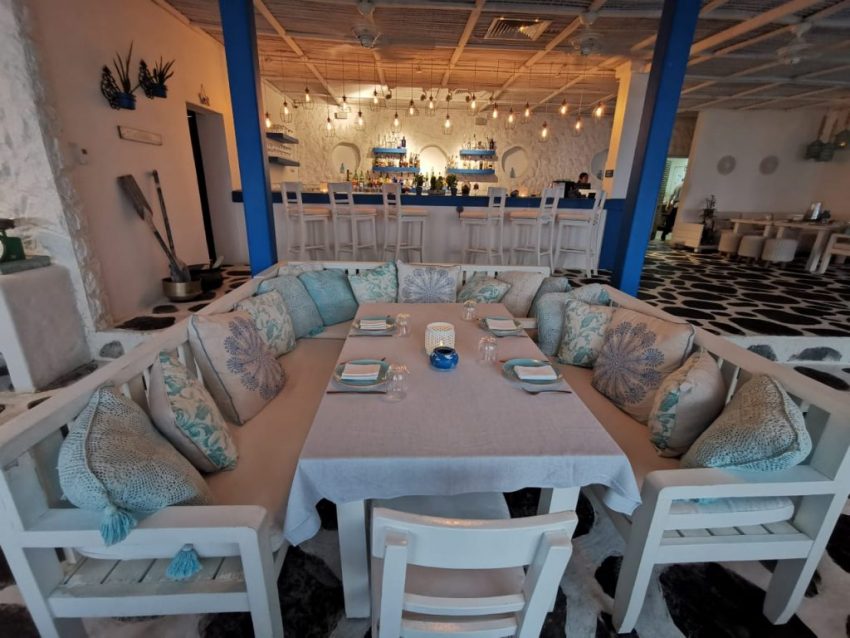 وعن زيارتنا، لقد اخترنا الجلوس في الردهة الداخلية للمطعم وبجانب النوافذ الزجاجية الكبيرة التي تسمح لك بالتمتع بالمشهد البانورامي للشاطئ، إلا أن الكثير من زوار المطعم قاموا باختيار احدى الجلسات الخارجية رغم شدة الحر، وذلك بسبب ما يوفره هذا المطعم من أجواء رومانسية ساحرة.