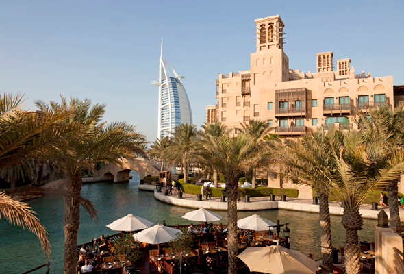 سوق مدينة جميرا Souk Madinat  عبارة عن وجهة للتسوق تقع في منطقة الجميرا ، وتحتوي متاهة من المتاجر والأكشاك قبل الوصول إلى المجاري المائية حيث يمكنكم ركوب العبرة التقليدية عبر المنتجع .